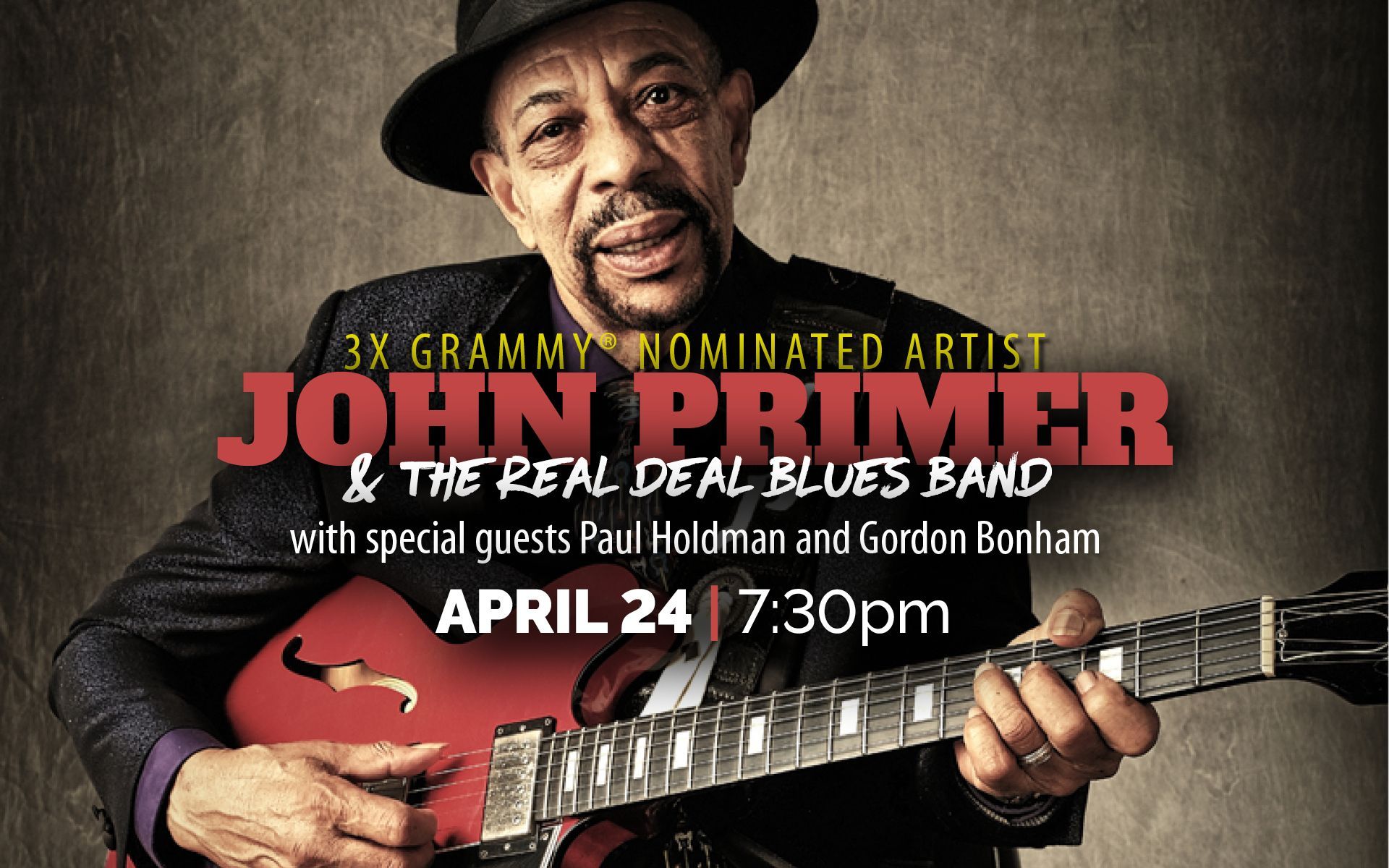 Primer’s long list of honors and accolades speak to his experience and reputation for engaging a live audience, including: Three-time Grammy® Award nominee; Blues Artist of the Year — Living Blues critic’s poll award; Traditional Blues Artist of the Year — Blues Music Award; Lifetime Achievement Award, Live Album of the Year, and Traditional Blues Album of the Year — Blues Blast Awards.